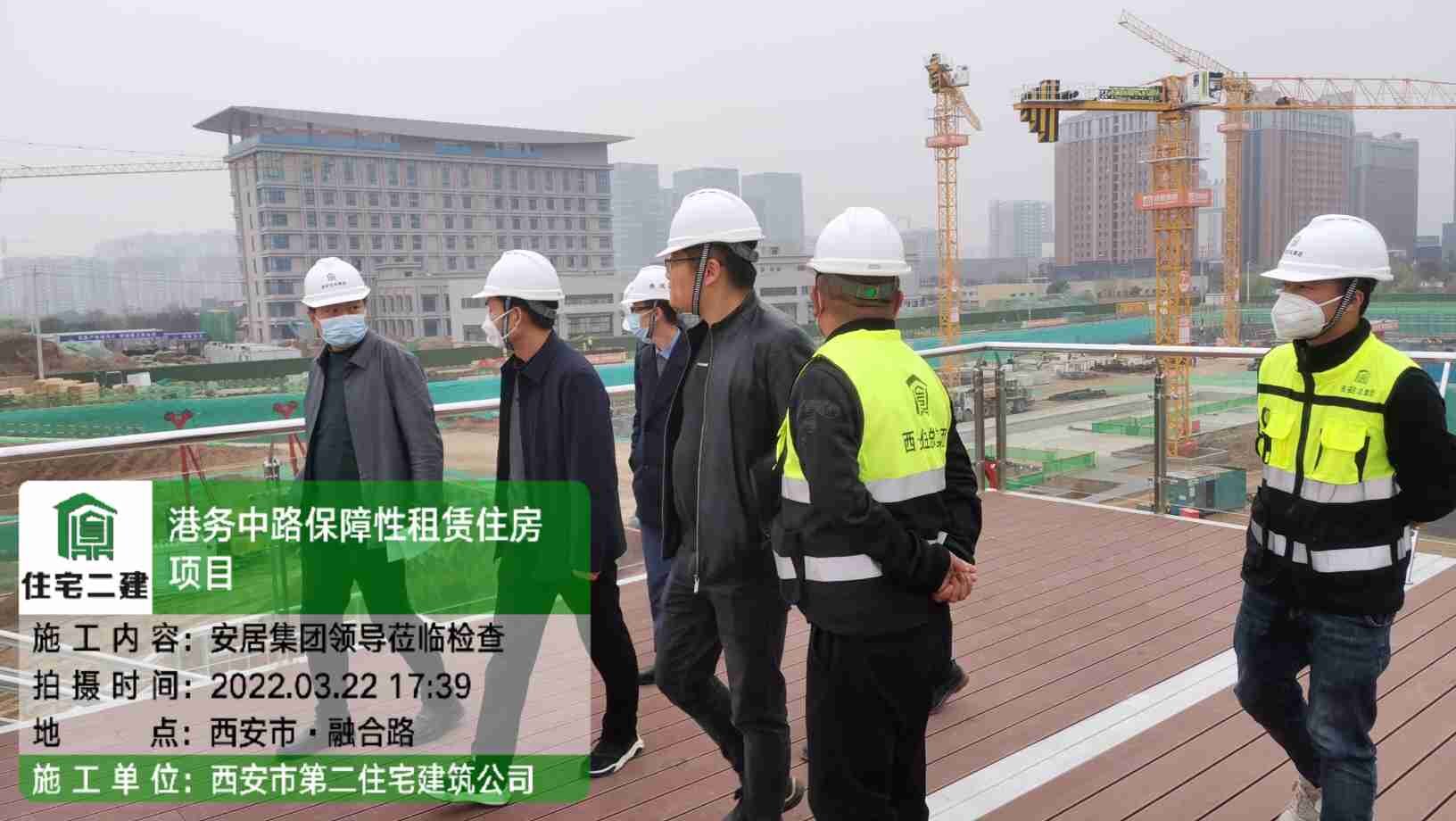 3月22日下午西安國際港務區管委會主任孫藝民主任等一行人蒞臨西安市住總建設集團承建的港務中路“平疫結合”保障房項目檢查指導工作,對現場質量進度安全全方位的進行指導,安居集團副總經理王煒鵬同志、建管部及住總建設集團總經理等同志陪同檢查。
