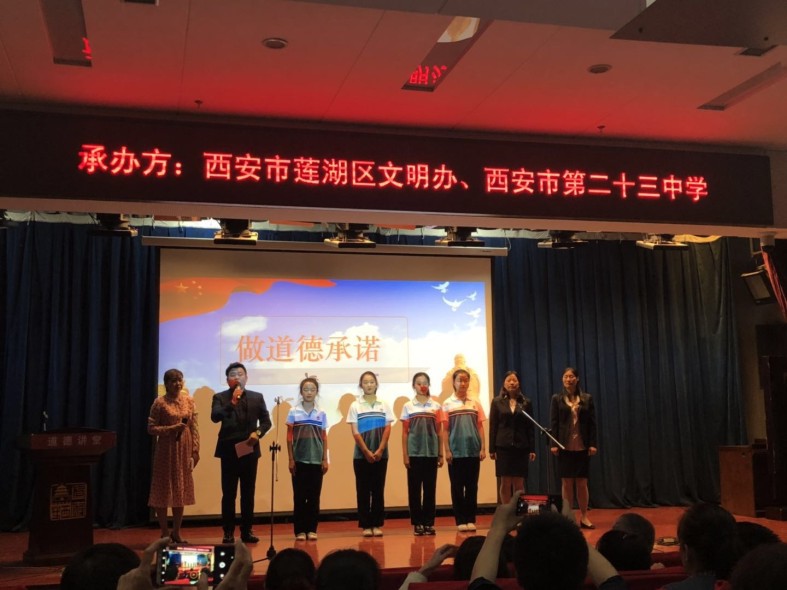 4月9日下午一場以西安市文明辦主辦,西安市蓮湖區文明辦、西安市第二十三中學協辦的道德講堂活動在西安圖書館精彩上演,住宅二公司派人參加了本次活動。